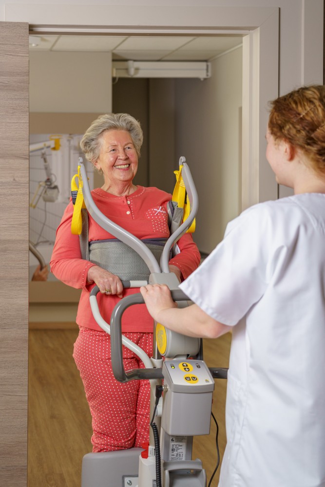 Dzięki połączonemu ruchowi ramienia podnoszącego i uchwytu oraz unikalnej konstrukcji kamizelki podnoszącej, więcej osób może być pionizowanych. Osoby, które na przykład mają brak siły lub wsparcia, nie muszą od razu przechodzić na podnoszenie pasywne, co upraszcza opiekę.