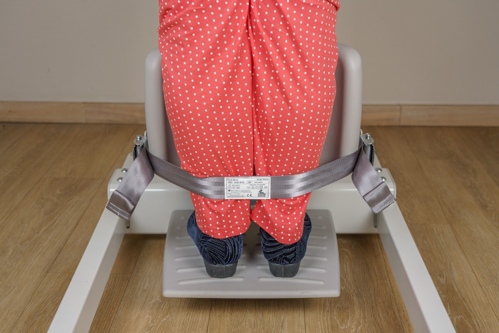 Rozstaw płóz jest elektryczny i odbywa się jednocześnie z ruchem podnoszenia (podnoszenie i rozstawienie płóz mogą zachodzić równocześnie). Dzięki dużemu zakresowi rozstawu płóz pionizator można łatwo ustawić wokół wózków inwalidzkich lub foteli geriatrycznych.