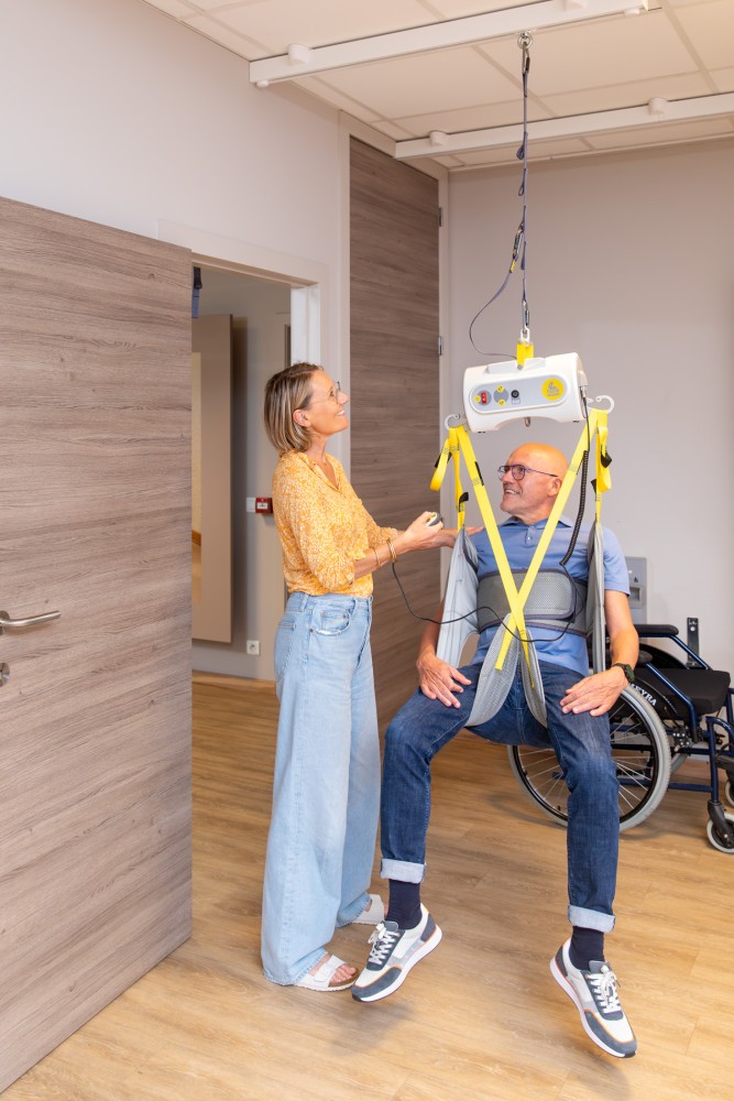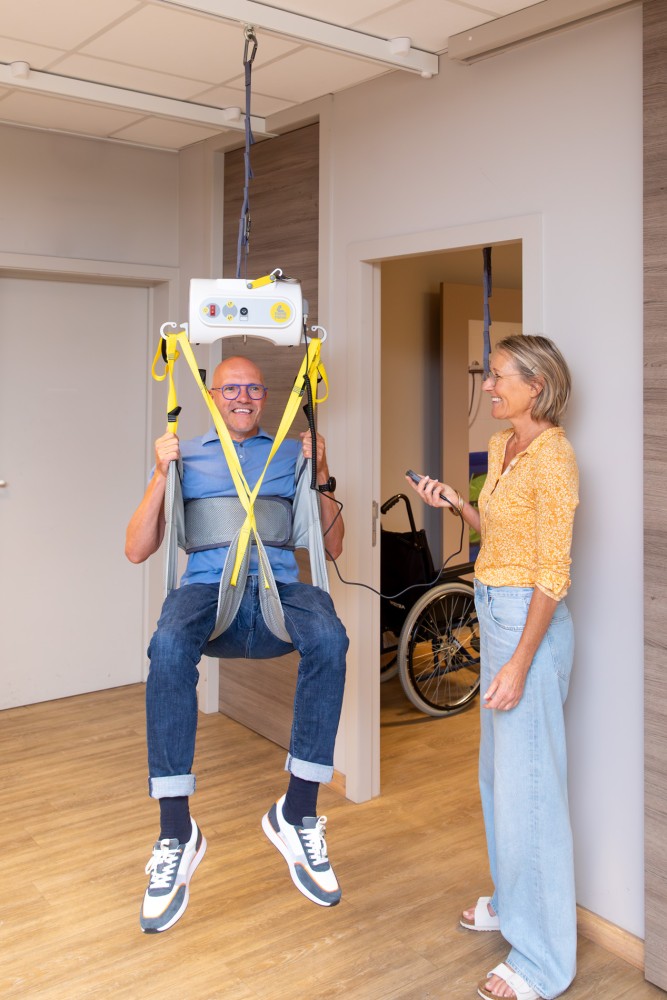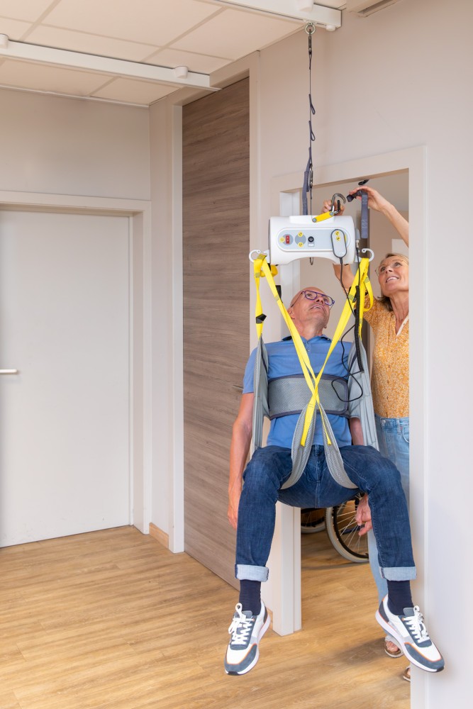 Żadne pomieszczenie nie pozostaje niedostępne — niezależnie od tego, jak jest małe. Wszędzie tam, gdzie zamontowane są szyny, przenośny podnośnik może być używany np. do transferu do łóżka w sypialni, wanny, kozetki i/lub toalety w łazience, oddzielnej toalety, fotela geriatrycznego w salonie czy do zmiany wózka inwalidzkiego w garażu…