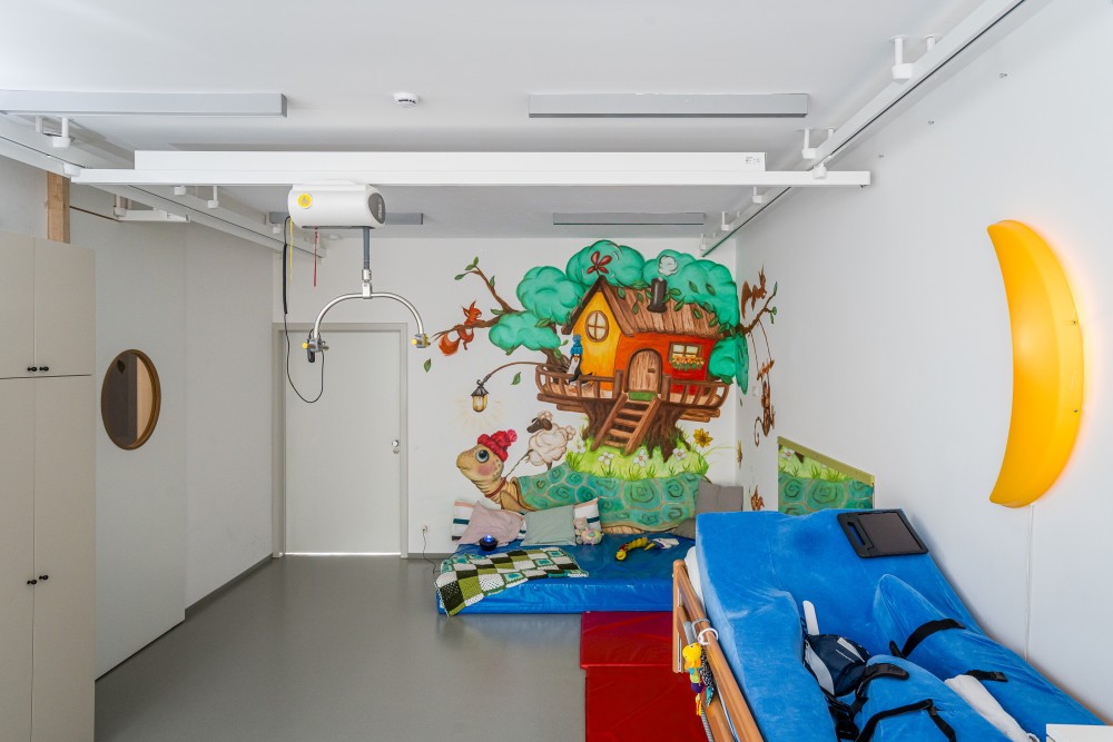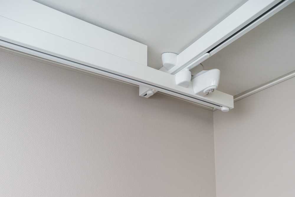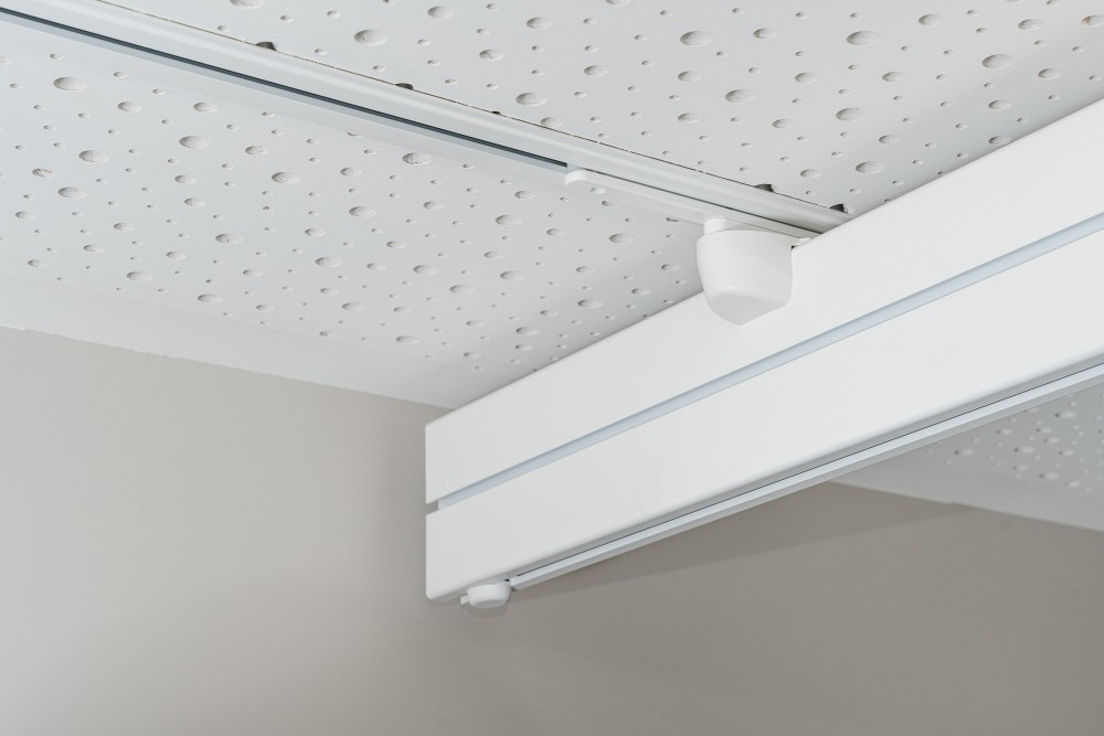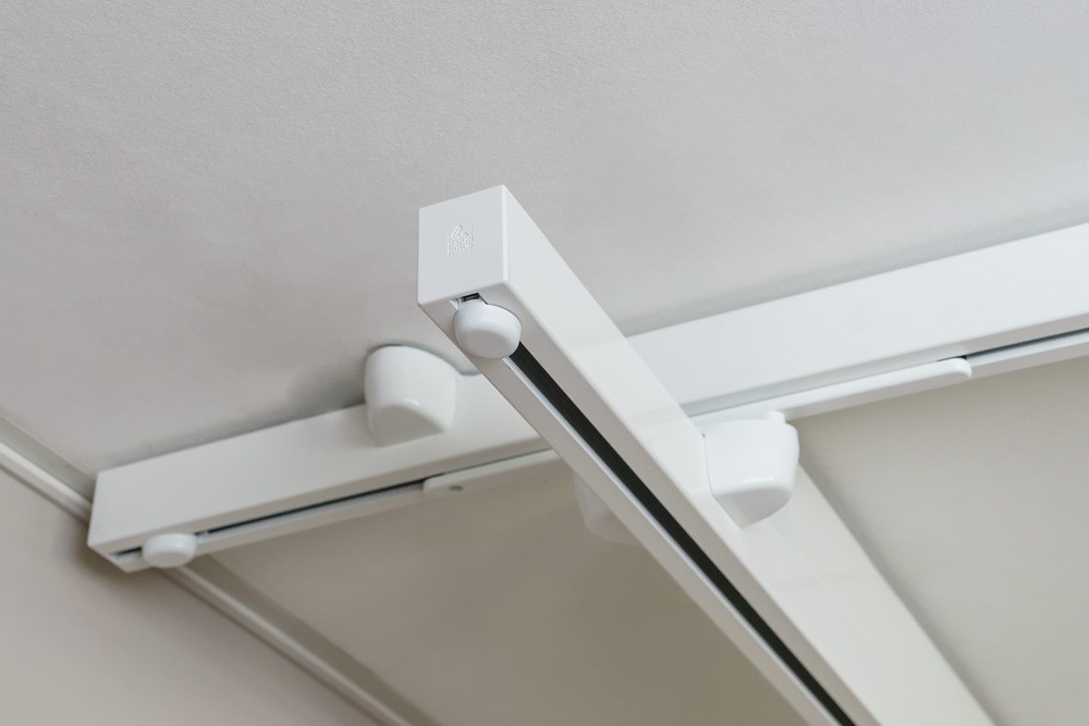 - Równoległe szyny można zamontować do sufitu lub od ściany do ściany
